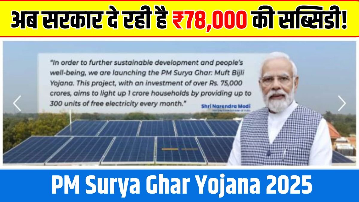 अब सरकार दे रही है ₹78,000 की सब्सिडी! बिना खर्च के लगवाएं सोलर पैनल घर बैठे—PM Surya Ghar Yojana